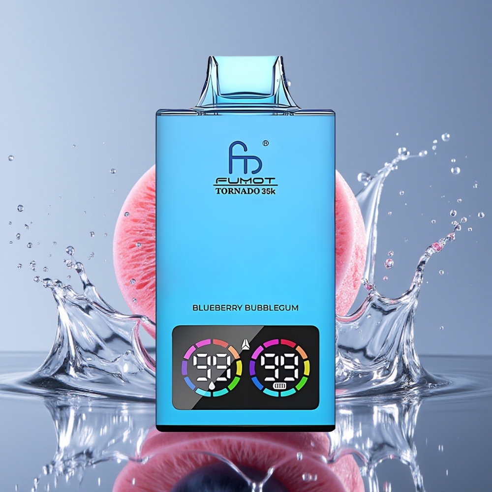 Fumot Tornado 35K 35000 užkandžių, Dviguba Tinklelinė Apvija, 15ml Skysčio, USB-C Mėlynių kramtomoji guma